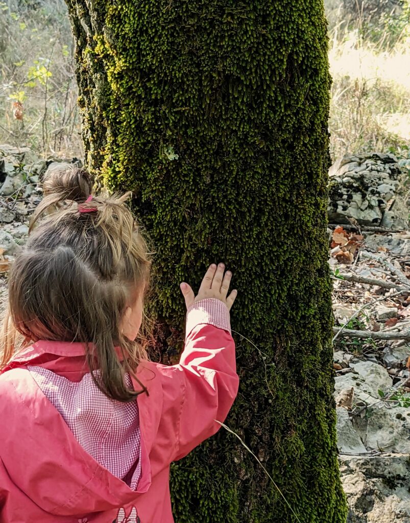 Les enfants sont invités à sentir, écouter, observer, toucher ce qui les entoure, tout en respectant